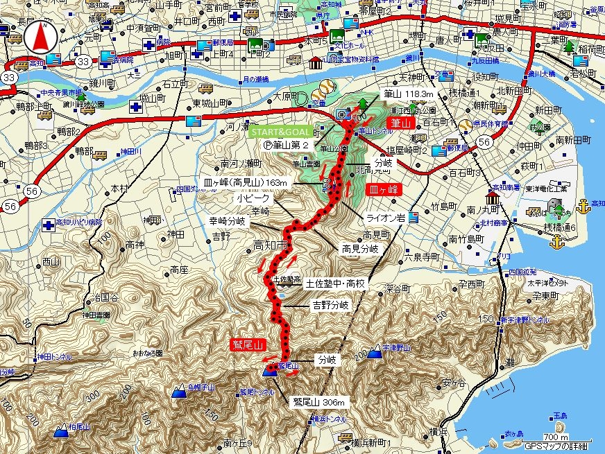 【水平距離5.25km、沿面距離5.59km、累積標高差(+)757m (-)703m】