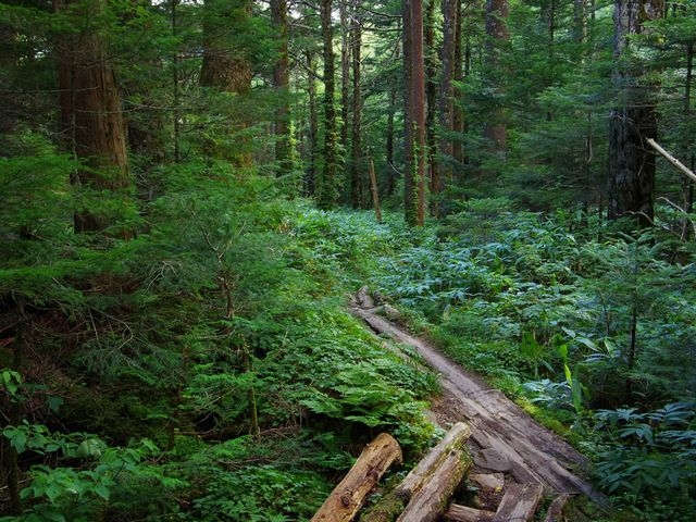 緑の濃い自然林と透明度の高い沢が気持ちいい。