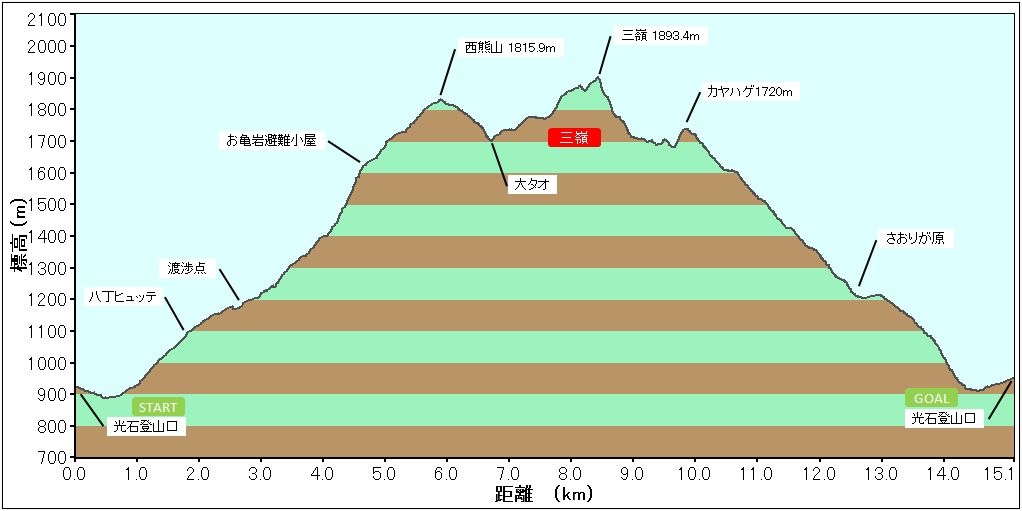 ( [○危] マークの岩稜歩きは今回のハイライト)