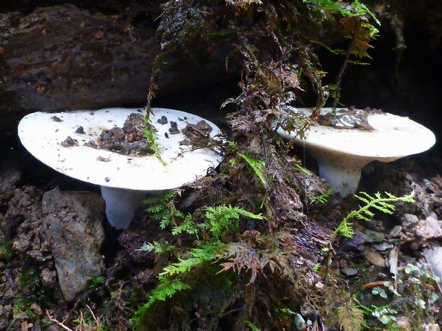 薄暗い林内で背の高いサラシナショウマが存在感を放つ。