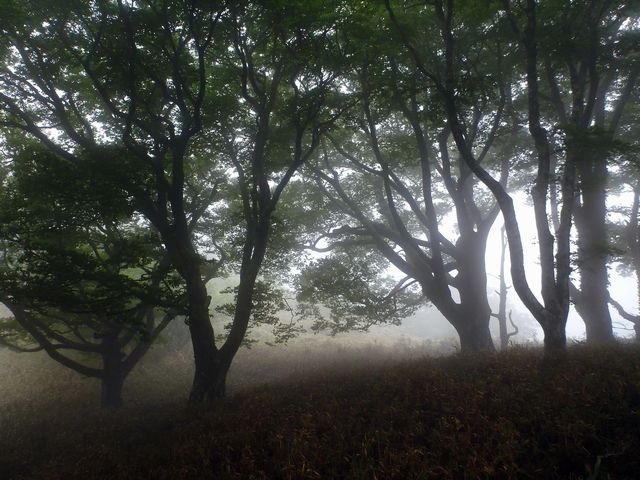 山頂の小さな森は灌木に覆われていて展望はきかない。