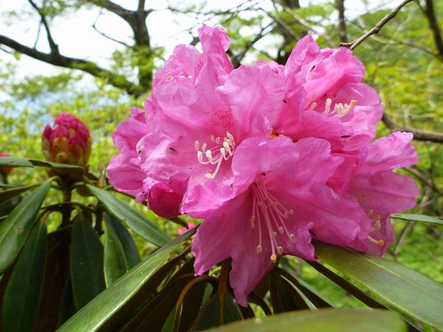 ホンシャクナゲ(本石楠花)はツツジ科ツツジ属の常緑低木で本州(中部地方以西)・四国の山地に分布する。ツクシシャクナゲの変種で雄しべは 14本、花弁は 7裂していて赤から白まで変化に富む。