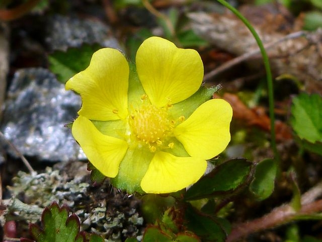 登山道に咲いていたヤブヘビイチゴ(藪蛇苺)と林道のヘビイチゴ(蛇苺)。