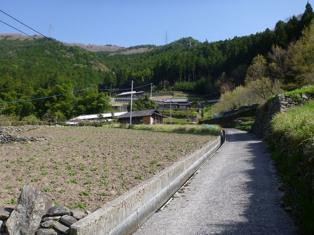 県道6号高知伊予三島線を別子山方面へ5㎞ほどで「足谷トンネル」を抜けてすぐの「中尾谷橋」手前を右に折れ、中尾集落へ。「赤星山登山口4.8㎞」の表示がある林道分岐を左に分け、右へ500mほど進むと道路の右下に中尾集会所が見えてくる。集会所に車を止めて集落の坂道を登る。