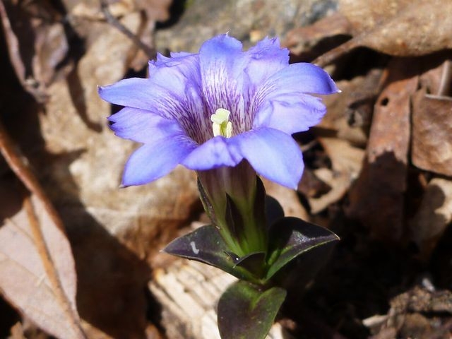 フデリンドウ(筆竜胆)は、リンドウ科リンドウ属の越年草で、草地や低山の明るい林に咲く小型のリンドウ。根生葉がないのでハルリンドウと区別できる。