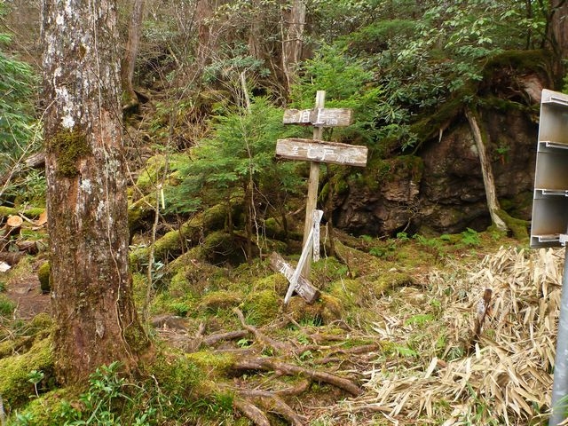 結局、どこが「展望所」なのか不明のままウロウロ。分岐まで引き返すのも面白くないので八丁小屋の方向へ直接下りてみた。