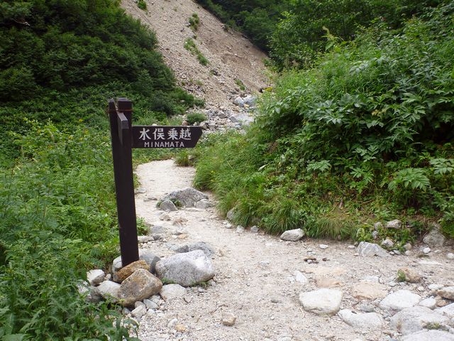 「水俣乗越へ登る」か、「槍沢をつめる」か、分岐で作戦会議・・・。