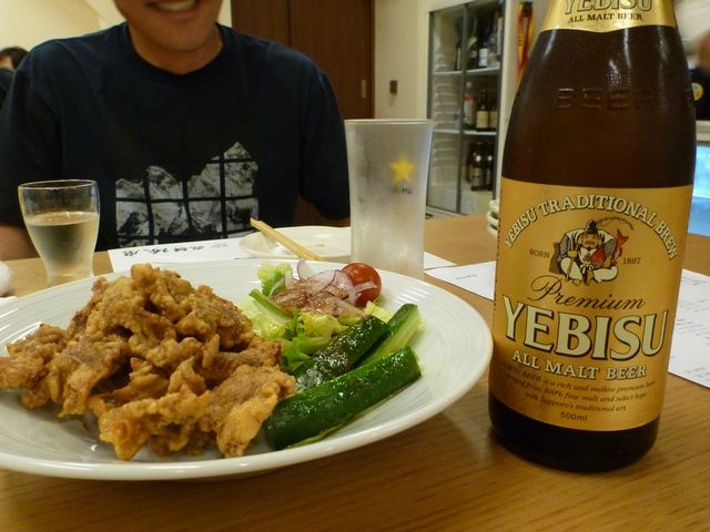 お待ちかねのビールタイムだが、悪天候で生ビールが切れていた (>_<)