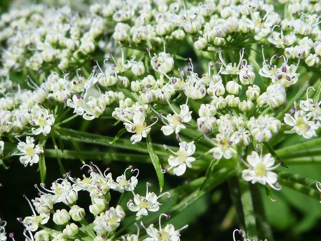 複散型花序はぱっと見はイマイチだけど、よく見ると紫色の葯をつけた小さな花が可愛らしい。