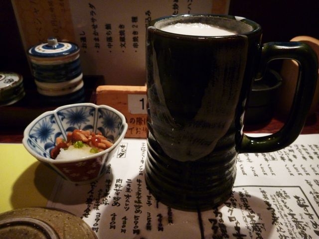 何度か座ったことのある窓際のカウンターで外を眺めながら一杯やる。よく冷えた陶器のジョッキに注がれたビールが最高!