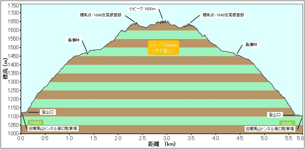 距離と標高差は白髪山(香美市物部)と同等ということになる。